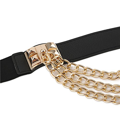 -. Title : Ya Jin Women's Elegant Leather Elastic Stretch Wide Waist Belt with Gold Plated Chain