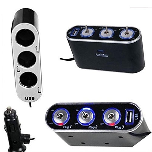 -. Title : Cigarette Lighter Adapter, ixaer 120W 3-Socket Car Cigarette Lighter Splitter LED Light Switch USB Car Charger Adapter DC 12V/24V Outlet Multi-functions Car Splitter for iPhone Samsung GPS Dashcam