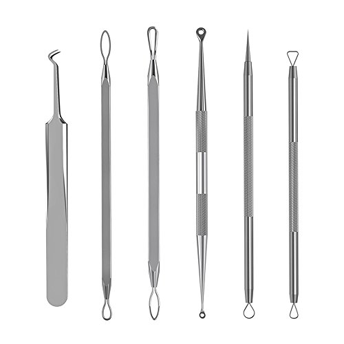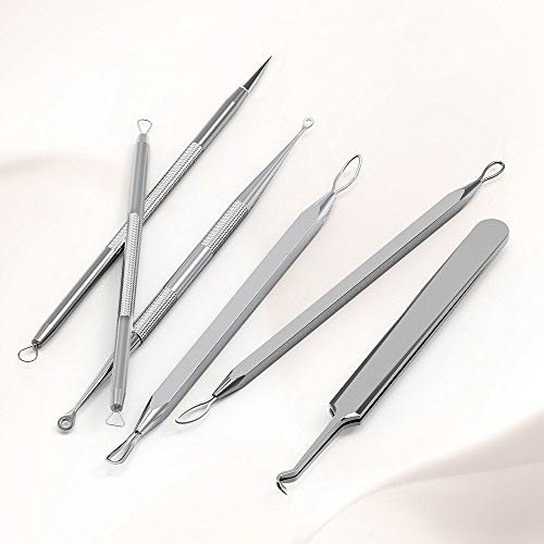 -. Feature : A Useful Skin Care Kit: A cleaner and more hygienic way than your fingers to remove impurities like acne, blackheads, whiteheads, comedones, and pimples / 6 Tools to a Clearer Complexion: 6 differently sized bottlenecks, needles, and tweezers effectively help you handle pimples and acne of different sizes and types / Ergonomically Shaped Stainless Steel: The tools are durable with a rust resistant stainless steel and anti-slip handle that helps you better control the pressure and get a secure grip during use / Convenience for Traveling: Individual leather package is convenient for storage and transport; integrated mirror enables you to use it everywhere / Precaution: We recommend to use the kit on acne that is ripe enough and please wipe all tools with rubbing alcohol before and after each use
