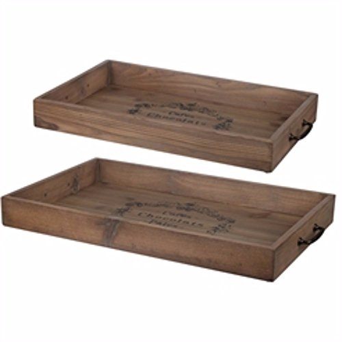 Benzara Sturdy Wooden Trays with Side Handles, Brown, Set of 2