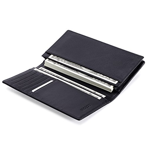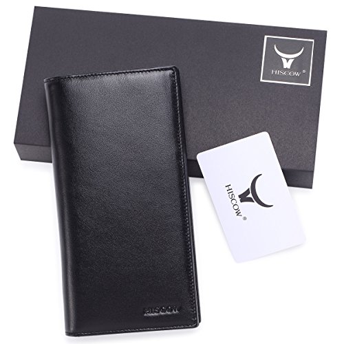 -. Binding : Apparel -. Brand : HISCOW -. Color : Black -. Department : mens -. EAN : 0711420235599 -. Feature : Italian full-grain calfskin (Soft and Smooth) inside & out / 7 credit card slots, 1 large compartment for cash, 3 additional compartments for receipts and papers / Measures: 7.2 x 3.78 x 0.86 (inches) closed empty / Made in Italy / Black gift box with Tags -. PackageQuantity : 1 -. ProductGroup : Apparel -. ProductTypeName : ACCESSORY -. Size : One Size -. Title : HISCOW Bifold Long Wallet Black with Large Cash Compartment - Italian Calfskin -. UPC : 711420235599