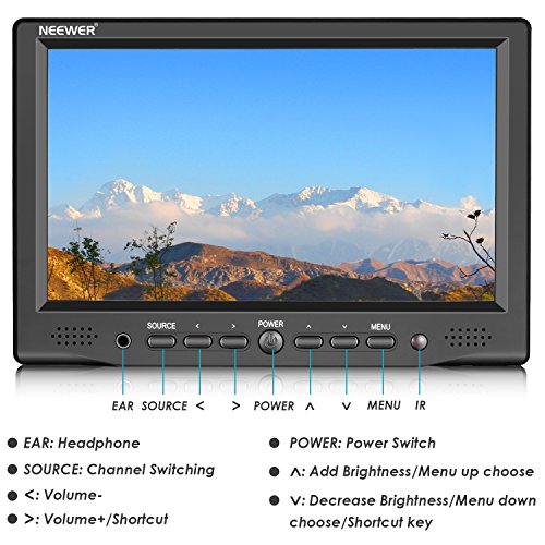 Neewer 7 inches On-Camera Field Monitor with VGA/AV/HDMI Input IPS Screen 800:1 Contrast 800x480 High Resolution for Canon Nikon Sony Olympus Pentax Panasonic DSLR Cameras and Camcorders (NW708-M)