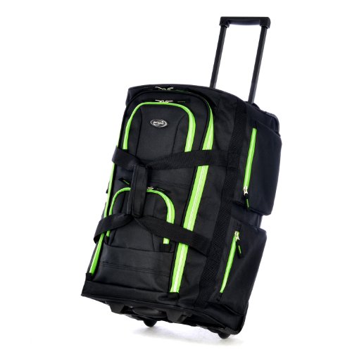 Olympia 22 Inch 8 Pocket Rolling Duffel, Black/Lime, One Size
