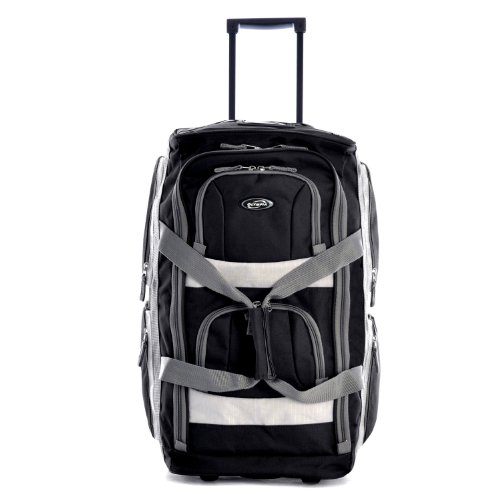 Olympia Luggage 22" 8 Pocket Rolling Duffel Bag, Black, One Size