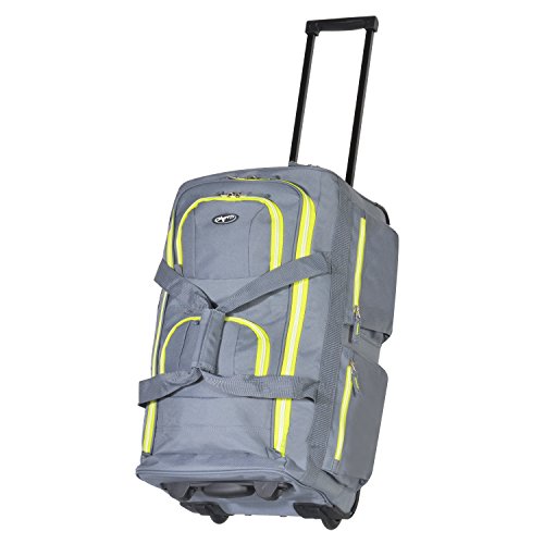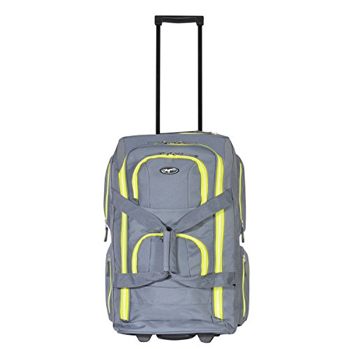 Olympia 22" 8 Pocket Rolling Duffel, Gray+Lime, One Size