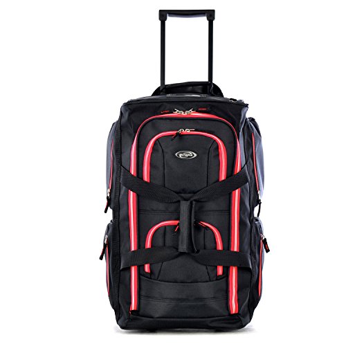Olympia 22" 8 Pocket Rolling Duffel, Black+Red, One Size