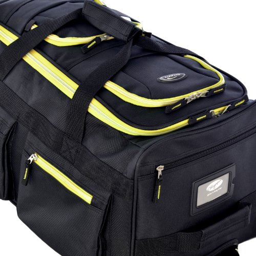 Olympia 22 Inch 8 Pocket Rolling Duffel, Black/Yellow, One Size