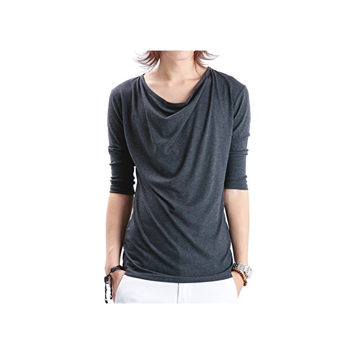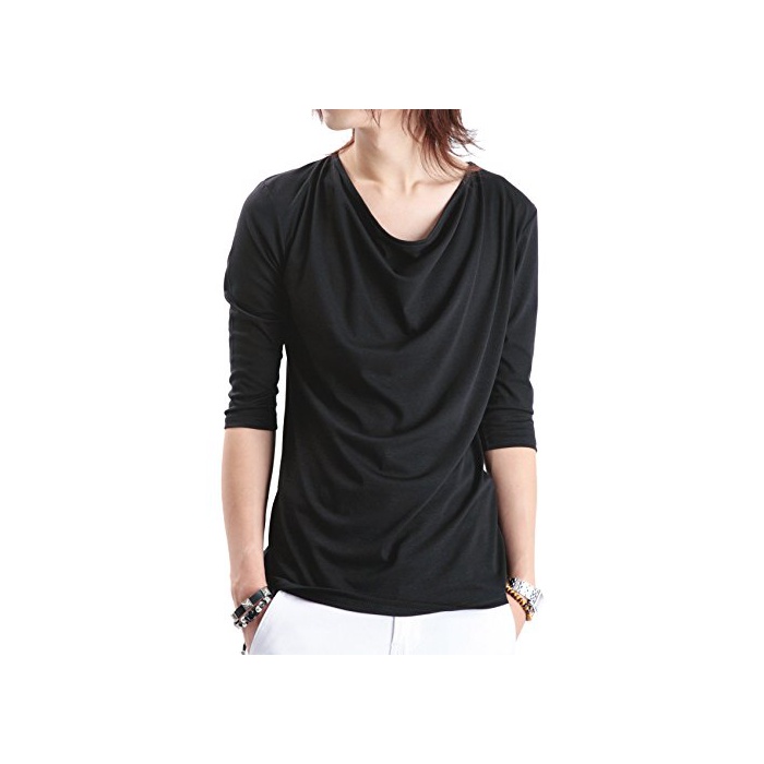 Roshell (러 쉘) roshell 드랩(장식주름)7 분수T셔츠 맨즈 7 분소매 맨즈 론T 맨즈 컷소우 맨즈 T셔츠 맨즈 7 분수T셔츠 맨즈 M 블랙