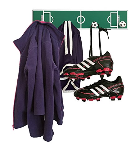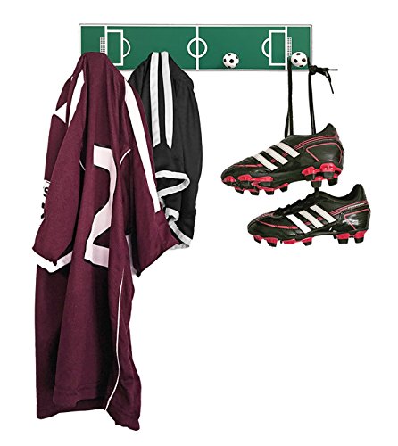 - 16-Inch by 3-Inch wood, soccer field themed hook rack is a perfect solution for organizing a child's room