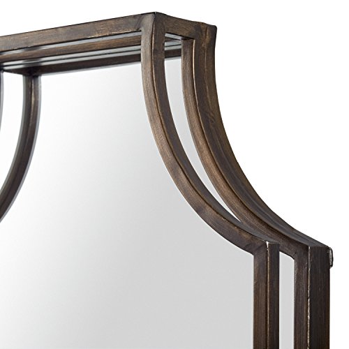 Straight lines are paired with graceful curves in this antique-style mirror. A double-layer black iron frame adds more vintage charm as well as a modern twist. This mirror will look right at home in a bedroom, hallway or living room.