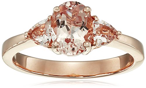 14k Rose Gold Morganite Oval and Trillion 3-Stone Ring, Size 7