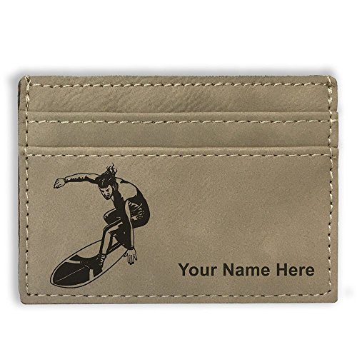 -. Binding : Apparel -. Brand : SkunkWerkz -. ClothingSize : Medium -. Color : Light Brown -. Department : mens -. EAN : 0654975842136 -. Feature : The Money Clip Wallet is laser engraved with the image that you see in the photo. / Your name or personalized message will be engraved on the wallet for free. / Synthetic leather construction. Includes space for 3 credit cards. / You may have one line of engraved text - 20 characters maximum. / Click the "Customize Now" button to begin customizing your wallet. -. ProductGroup : Apparel -. ProductTypeName : ACCESSORY -. Size : Medium -. Title : Money Clip Wallet - Surfer Man - Personalized Engraving Included (Light Brown) -. UPC : 654975842136