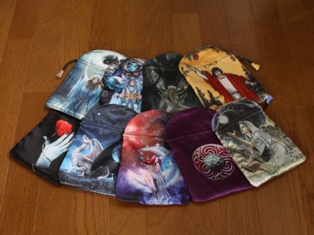 ペイガンムーン、フェアリー、ローズハンド、セイクリッドプリーステス、マジックスター、ムーンフェアリー、ブラックキャット、イルミナティ、ユニバーサル、ドラゴンズ・・・神秘的な美しいイラストがプリントされています。