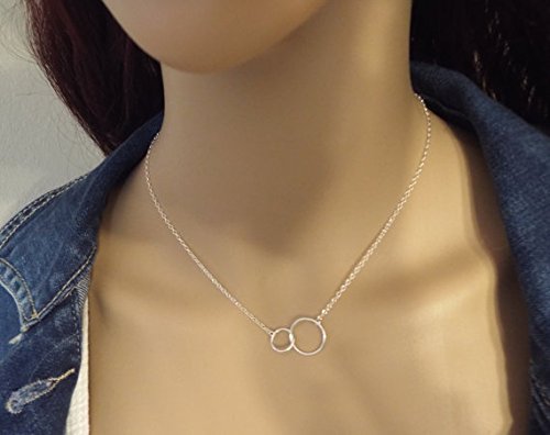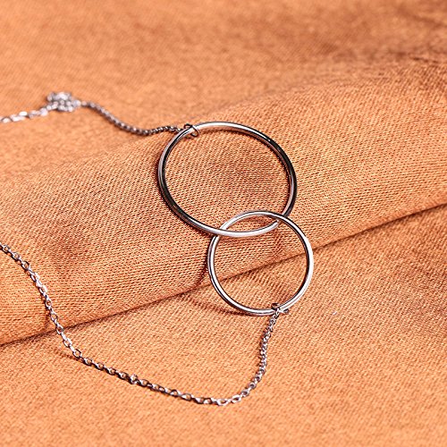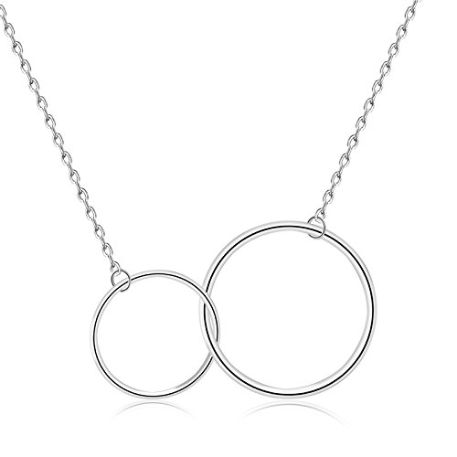 [Scan Tiffany] s? TIFFANY & oC. Model popular products Double Circle Women's Sterling Silver (s925 Stamped) 2017 necklace pendant chain three-step adjustment jewelry pouch set (Silver)