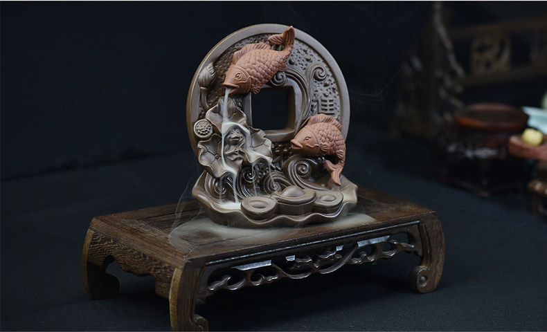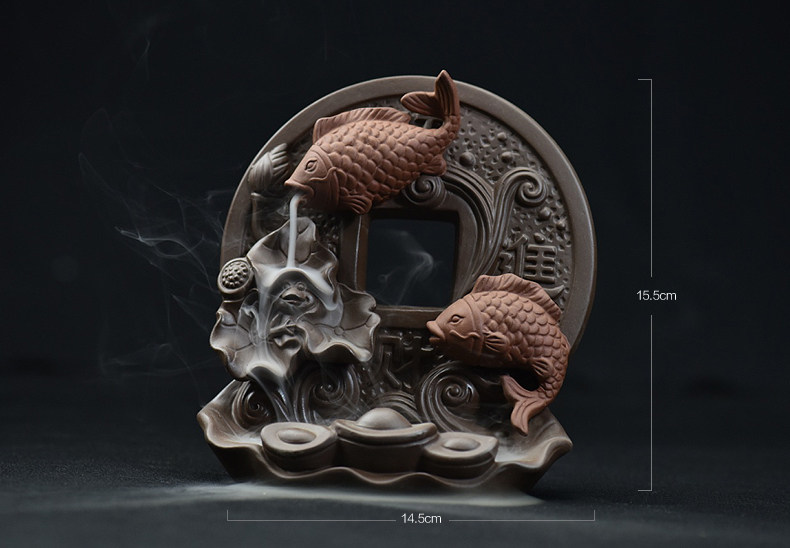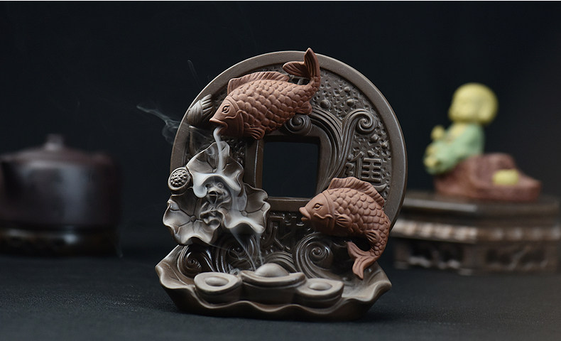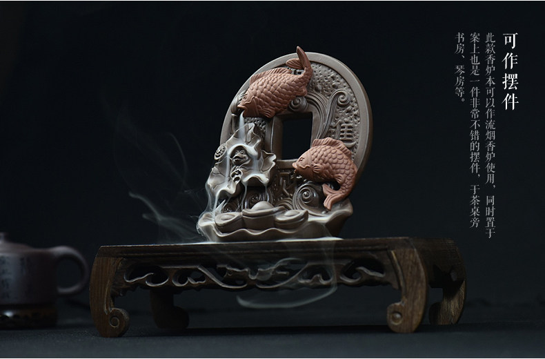 倒流香香炉陶瓷 鱼跃龙门创意招财进宝檀香炉仿古香薰炉摆件