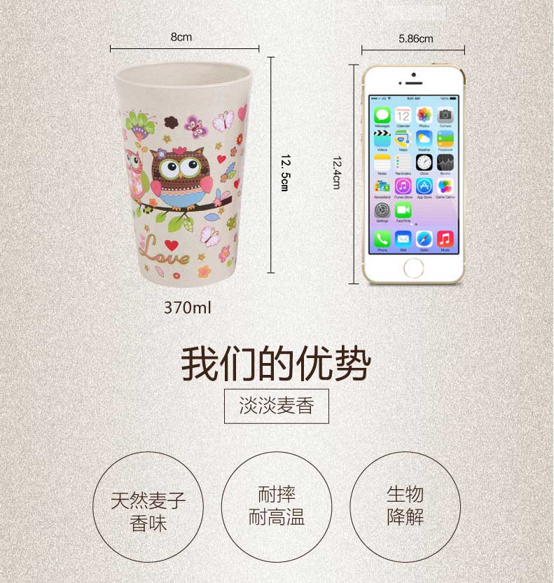 儿童卡通刷牙杯子370ml 小麦健康情侣漱口杯旅行牙刷洗漱杯