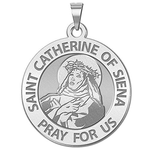 -. Title : Saint Catherine of Siena Religious Medal - - 3/4 Inch Size of a Nickel -Sterling Silver