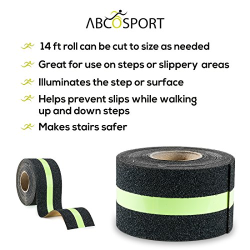 Anti-Slip Grip Tape – Glow-in-Dark for Local Illumination - Improves Grip and Prevents Risk of Slippage on Stairs or Other Slippery Surfaces - 2” Wide and 14’ Long Roll - Keeps You Safe!