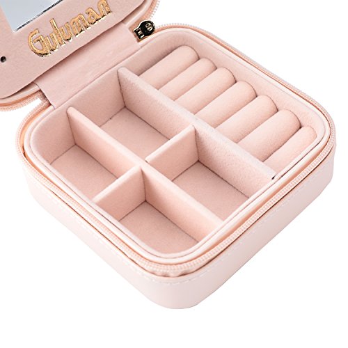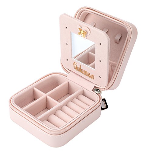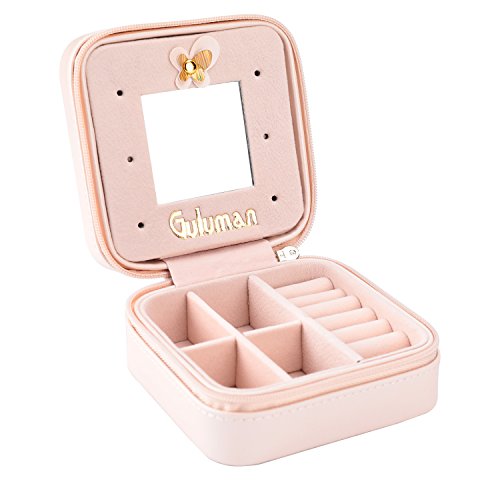 Jewelry Box, Guluman Small Portable Travel Jewelry Storage Case Display Organizer Mirrored Holder for Rings, Earring, Necklace, Bracelet (S=10CM, Pink)