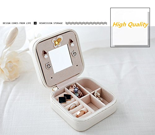 - Beautiful Design: Lightweight, Portable to carry, the mini travel jewelry box is specially designed for journey, portable and space saving. The interior mirror makes it easier to dress yourself. Perfect size for girls who do not own too much jewelries.