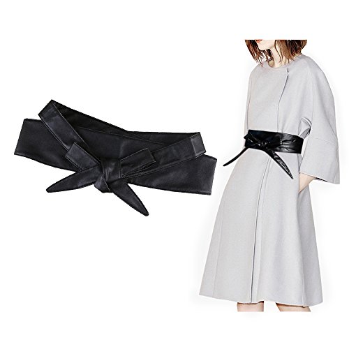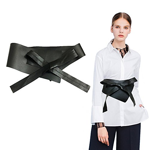Binding : Apparel Product Description VITORIA'S GIFT Black PU Leather Boho wide girdle irregular bowknot bandage girdles