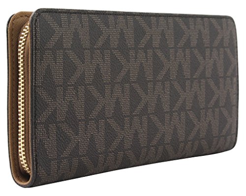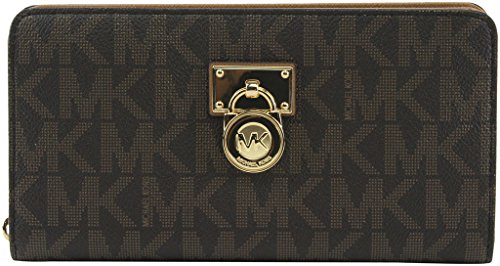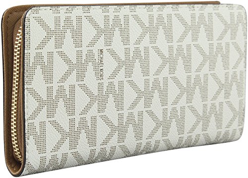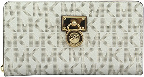 -. Binding : Apparel -. Brand : -. Color : Vanilla Acorn -. Department : womens -. Feature : Zip-around closure; MK signature pattern / Exterior features gold-tone hardware / Interior features 1 zip pocket, 3 slip pockets and 10 card holders / Approximate mearsures 8" W x 4.3" H x 1" D -. ProductGroup : Apparel -. ProductTypeName : ACCESSORY -. Size : One Size -. Title : MICHAEL Women's Hamilton Traveler Large Zip Around Cluch Wallet, Style 35F7GHXZ1B