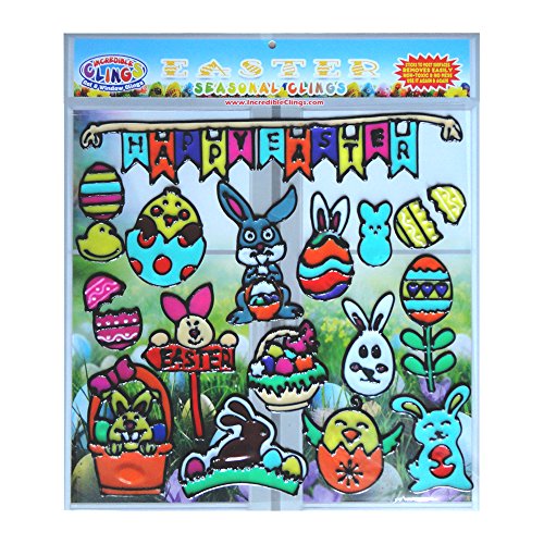 Easter Holiday Gel Clings for Kids & Toddlers - 18 Piece Window and Wall Clings - Reusable and Removable Thick Strong Vinyl Gels - Easter Bunny, Eggs, Basket, Chocolate and More!