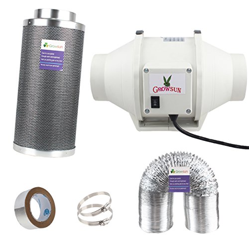 Growsun 6 inch Duct Fan Exhaust Kit Carbon Filter Fan Combo With 25-Feet Ducting and 2 Clamps