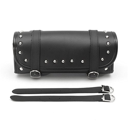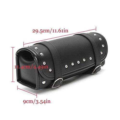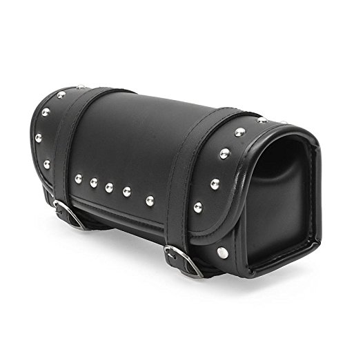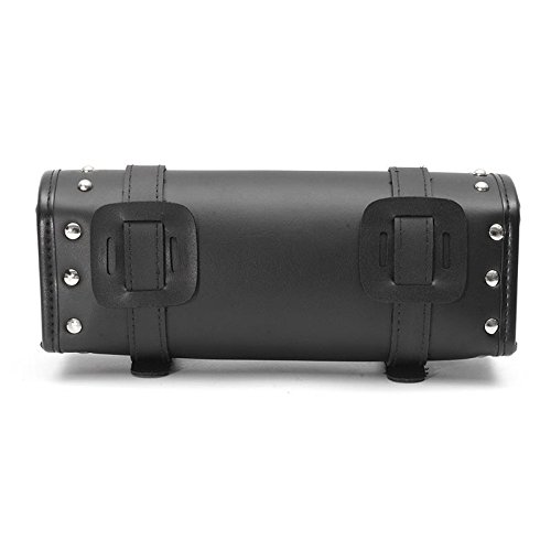 Katoot@ Motorcycle Bag Barrel Shape PU Leather Black Bike Front Rear Fork Tool Saddlebag For Softail Sportster Dyna 29.5cm9cm11.4cm