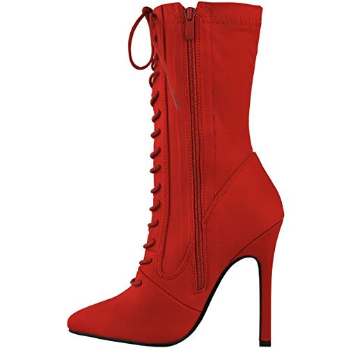 Fashion Thirsty Womens Lace Up High Heel Stiletto Lycra Ankle Boots Size