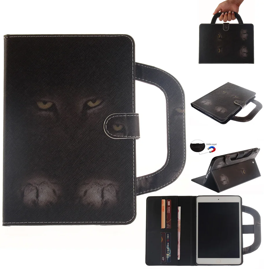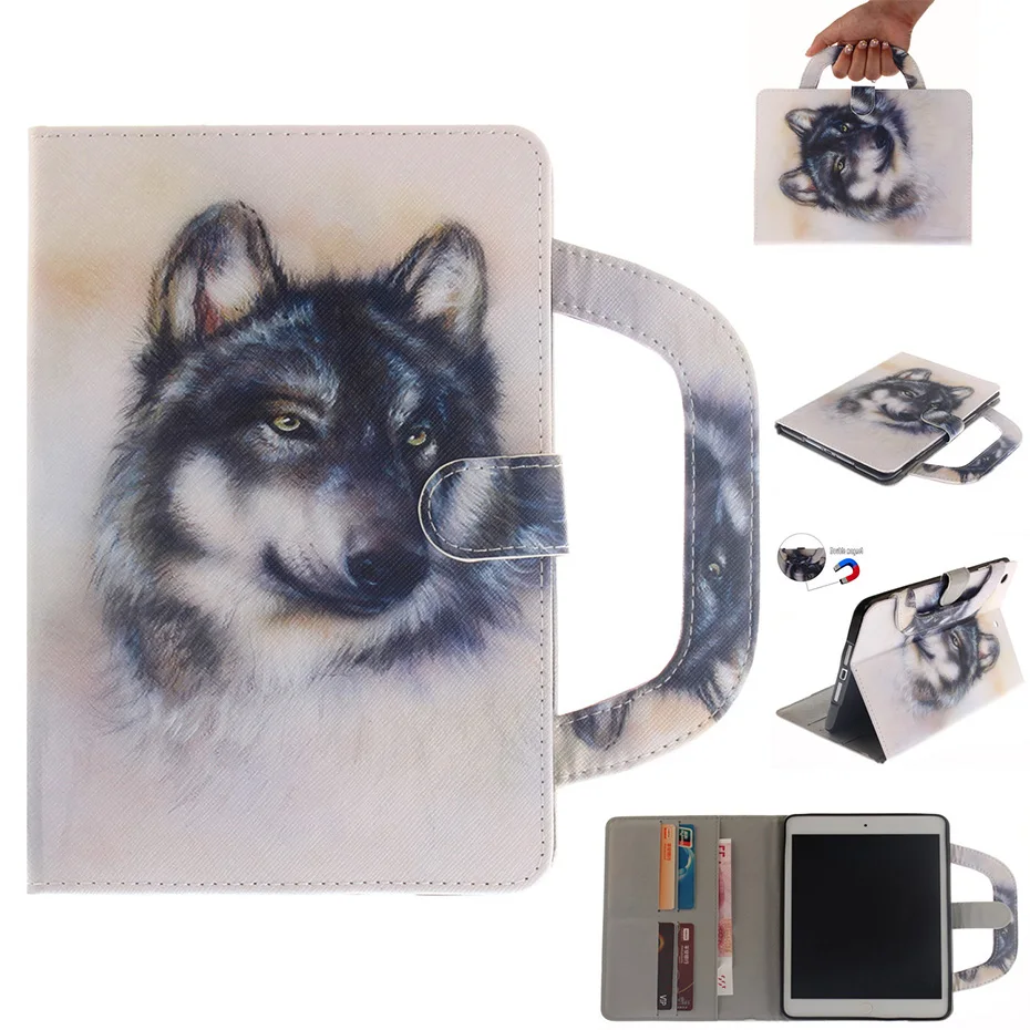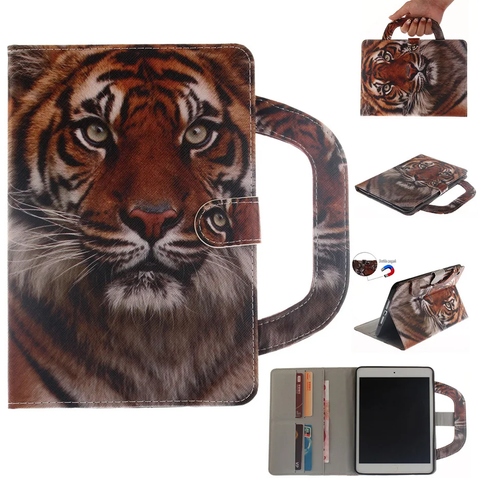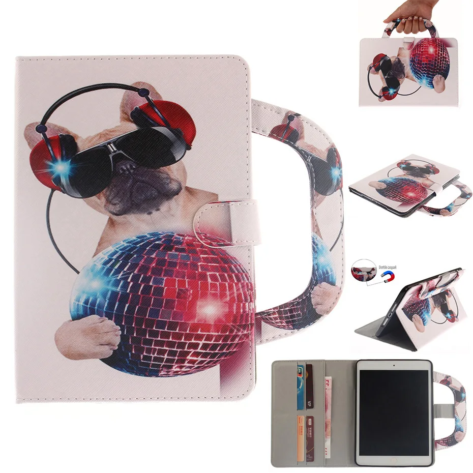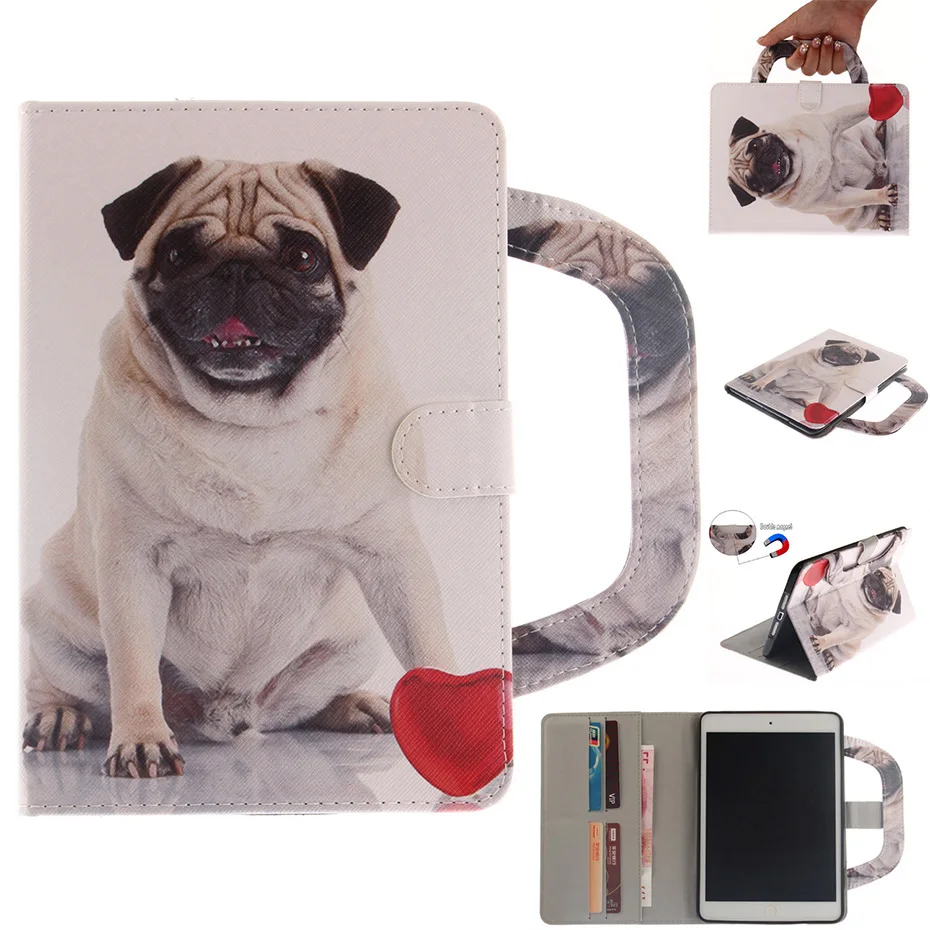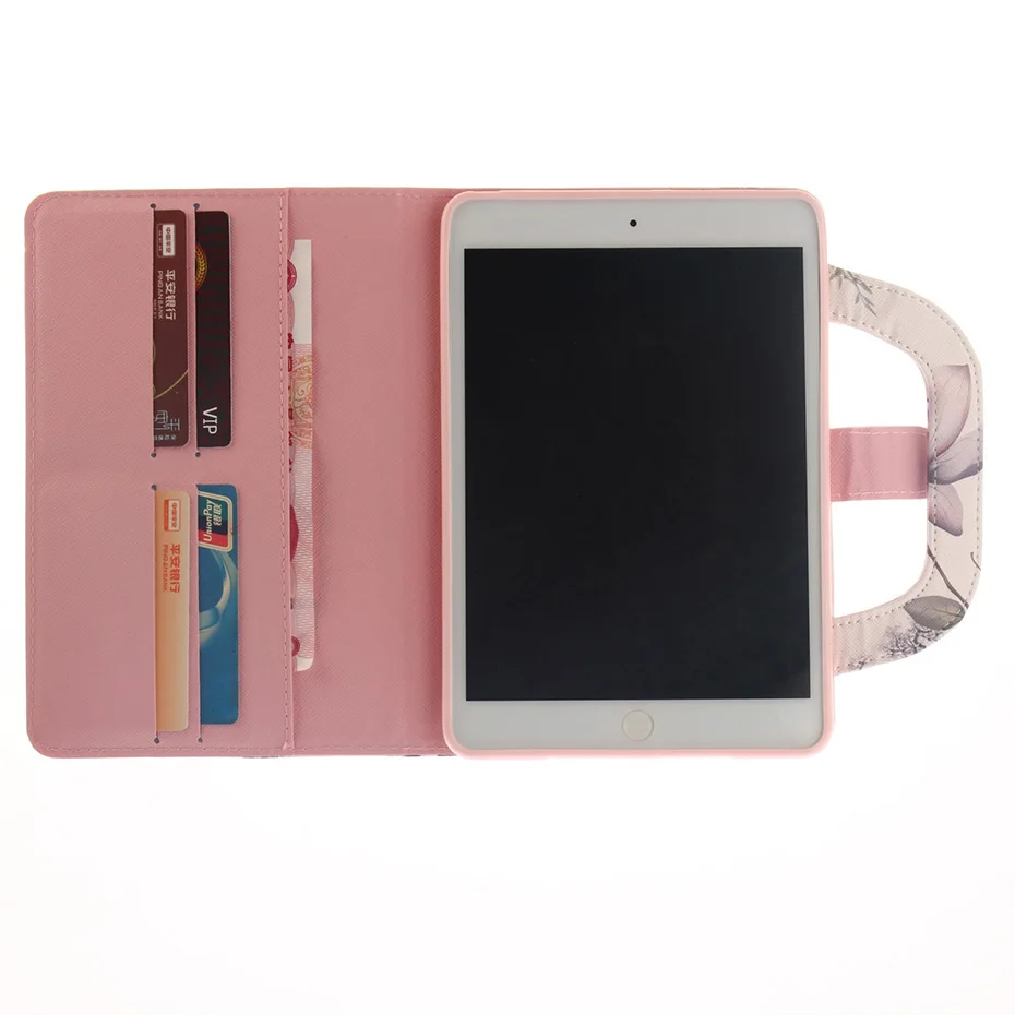 ハンドヘルドストラップケース用アップルipadミニ3 2 1漫画かわいいpuレザーフリップスタンドケース子供面白いカードホルダー財布フルカバー