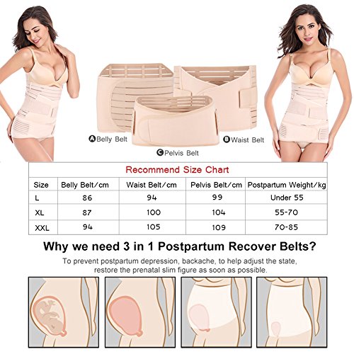 -. Feature : 3 BELTS in 1 SET: postpartum belly belt contains belly belt, waist belt BELT and pelvis belt in one set, fulfilled all your needs throughout the postpartum recovery process. This postnatal pregnancy wrap help you quickly restore body shape, ease postpartum discomfort, regain confidence / BREATHABLE&COMFORTABLE: this postpartum belt is made from high quality stretchable, lightweight fabric to fit the natural curves of your body, it doesn't roll up, very comfortable, breathable to wear and easy to clean. It can be worn under clothes,adjustable closure for easy wearing, helps reduce waist / SPEEDS UP POSTPARTUM HEALING PROCESS: It speeds up the postpartum healing process by helping to ease the transition of the uterus and by shrinking it down to it's normal size,support your lower back and hold tummy in, redefine the waistline,relief back pain / A GREAT GIFT: for women just after giving birth or anyone had surgical operation resulting in loose skin and back pain; effectively tighten and flatten your postpartum belly, great back support,especially helpful after a c-section, It can be stretched to fit the natural curves of your body,Speeds up / 3 DIFFERENT SIZE: magic paste has amazing grip and stays on so you don't have to constantly readjust it, providing you with effective support, choose the approP.R.Iate size, this product will fit your perfectly needs,Please before the purchase in accordance with the size of the picture correct the measurement, the correct comparison and then buy