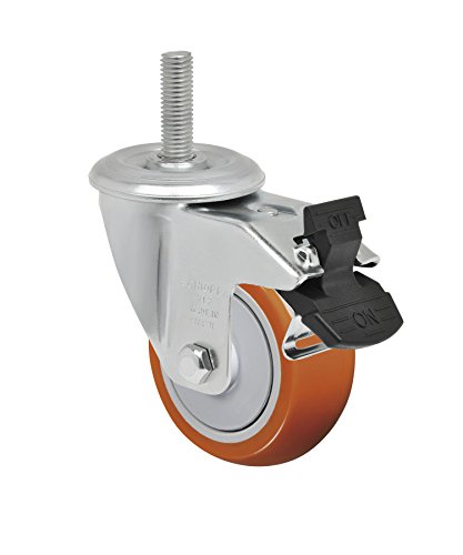 Schioppa L12 Series, GLEIH 312 UPE G, 3 x 1-1/4" Swivel Caster with Total Lock Brake, Non-Marking Polyurethane Precision Ball Bearing Wheel, 175 lbs, 1/2" Diameter x 2" Length Threaded Stem