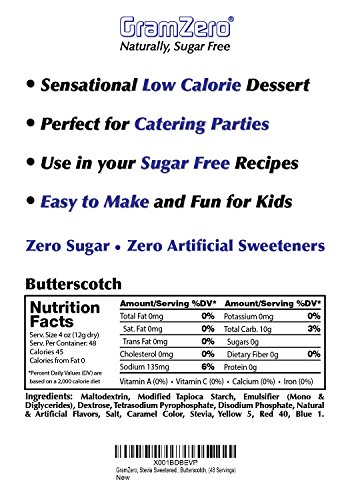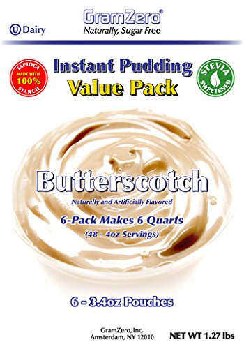 GramZero Butterscotch Pudding Mix, 6/1 QT Yield (48 - 4 oz servings), Stevia Sweetened, SUGAR FREE