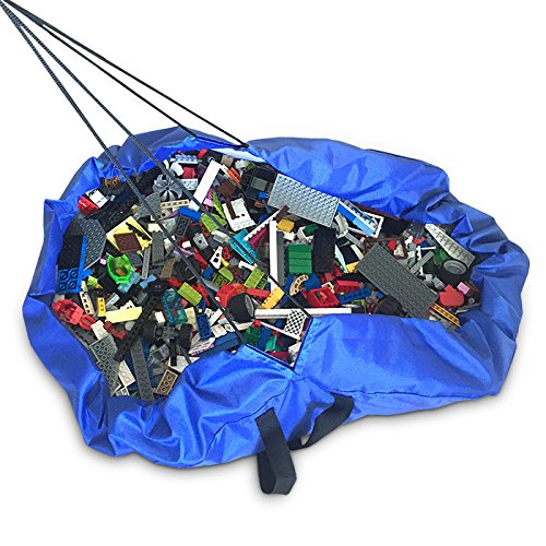 This Portable Toy Organizer turns from a 35 inch play mat into a storage bag in a snap. Enough of room for lego bricks, trains, hot wheels cars, planes and other toys organized in the nursery or playroom.