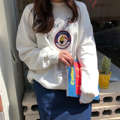 캐주얼한 스타일의 루즈핏 맨투맨입니다. 프론트에 레터링과 귀여운 앵무새 그림이 포인트로 들어가 캐주얼한 느낌을 주는 아이템인데요. 전체적으로 루즈한 핏감이라 편하면서 데일리하게 입기 좋구요. 드롭숄더와 넉넉한 품으로 체형에 구애 없이 착용 가능해요. 스커트나 팬츠 등 여러 아이템과 활용해 코디하기 좋은 맨투맨입니다.