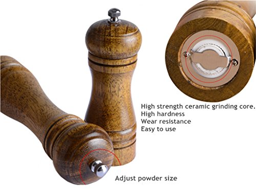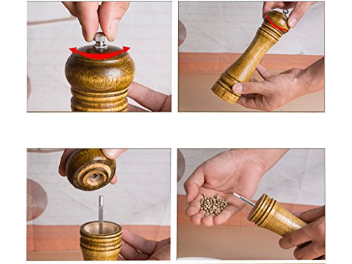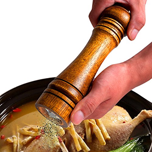 Duode Time Natural Oak Pepper And Salt Mill Grinder Tool Family holiday Dinner Easy To Use Triditional Retro (10.5 IN)
