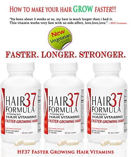 HF37 faster hair growth vitamins are how to make your hair grow longer faster in 2 capsules per day. After extensive research and comparing ingredients with several other hair growth pills that claim to grow hair faster, HF37 hair vitamins for faster growing hair have come up top as a far more superior faster hair growth vitamin than any other. Not only does it have every vitamin that supports healthy hair growth, it also has all of the amino acids (protein for hair) necessary to grow hair longer and stronger. When hair is at its healthiest, it will naturally grow faster. HF37 has every vitamin and amino acids in the right amount needed to make hair grow longer faster. It isn't magic hair growth pills that will make your hair longer overnight. Run away from any hair growth pills that claim this. On average, results are typical within the first 30-60 days.