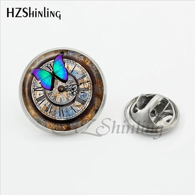 Item:Clock Butterfly Clasp Pin