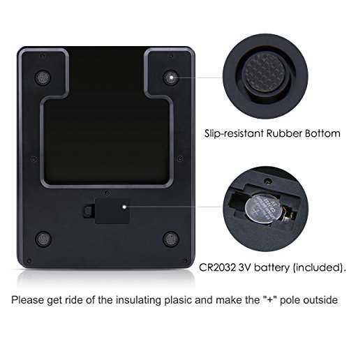 Package Included: Black Kitchen Scale * 1 + CR2032 3V battery * 2(One included in the scale and extra one for backup)