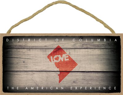 (SJT13584) District Of Columbia - Dc Outline With "Love" And Dc Motto 5" x 10" Wood Plaque Sign