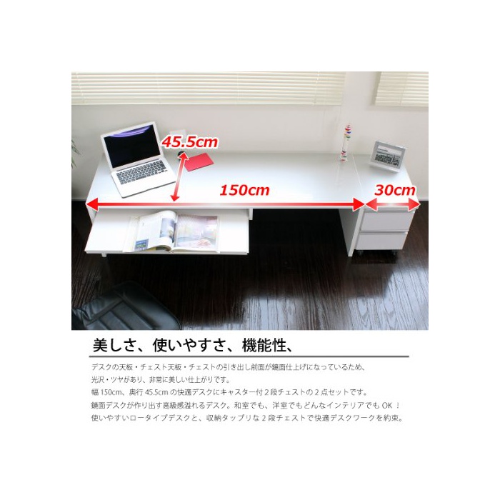 사이즈:데스크/폭150×(길이)깊이44.5×높이43.5(cm)체스토/폭30×(길이)깊이44.5×높이43.5(cm)인출/폭23.6×(길이)깊이33.85×깊이14.7(유효)/9(cm) ×2