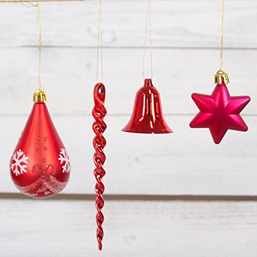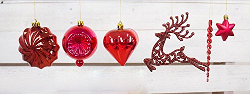 Happy E-life 24Pk Cute Six Kinds Of Shapes Christmas Decoration Ornaments Red (Gift Pack 1)