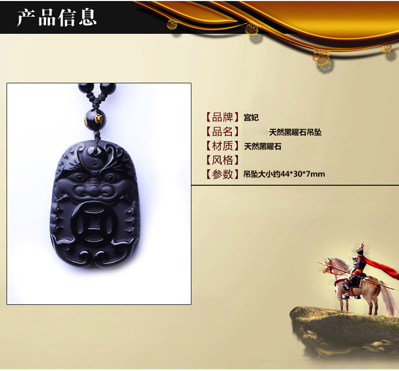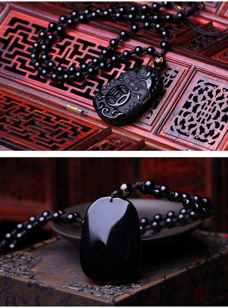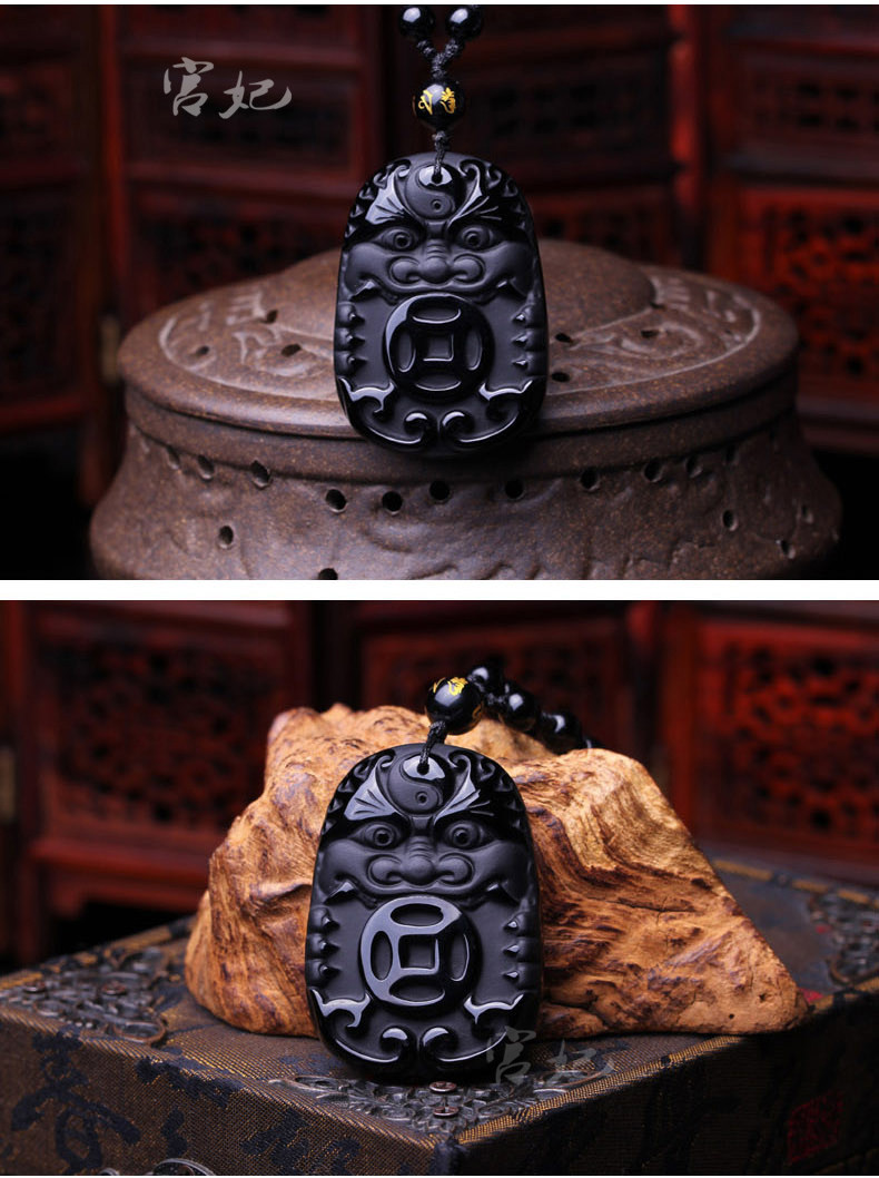 开光 金麟福禄黑曜石吊坠护身符生肖属猴吊坠生肖吉祥物