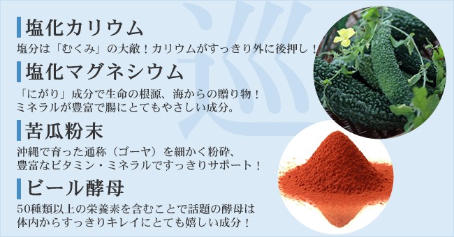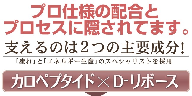 | 原材料名 | 乳糖、カロペプタイド、ビール酵母、D‐リボース、発酵黒にんにく末、苦瓜粉末、トウガラシ粉末、緑茶抽出物、結晶セルロース、塩化カリウム、ショ糖脂肪酸エステル、微粒二酸化ケイ素、塩化マグネシウム、ゼラチン(被包材) |
