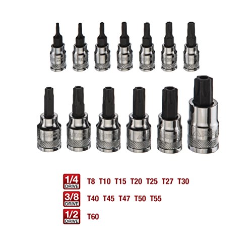 13-Piece Tamper-Proof Torx Bit Socket Set | ARES 70103 | Size Range from T8-T60 and are ¼”, 3/8”, and ½” Drive