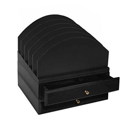 Bindertek Stacking Wood Desk Organizers Step Up File & 2 Drawer Kit, Black