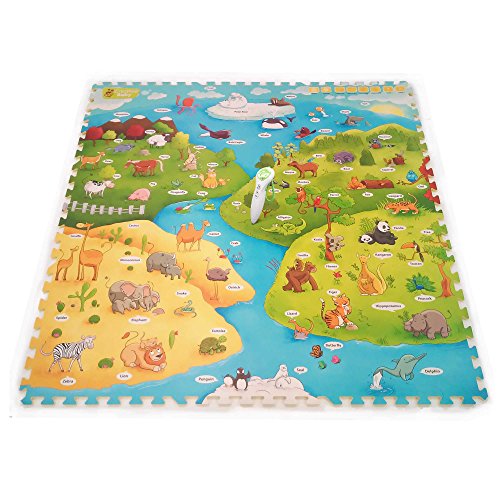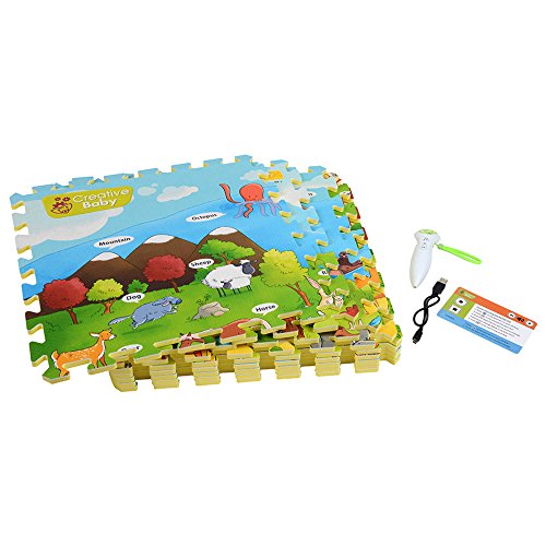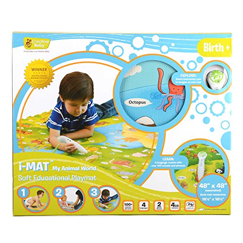 -. Binding : Toy -. EAN : 4913923106949 -. Feature : The My Animal World i-Mat with Voice Pen gives your child an immersive learning experience, it offers a fun way to develop vocabulary and identifying skills / Voice Pen recommended for ages 18 months and up / Your child will begin developing vocabulary and comprehension by interacting with the Voice Pen / Set comes in 9 easily assembled pieces / Assembled measurement: 48" x 48" -. IsAdultProduct : 0 -. Label : Creative Baby -. Manufacturer : Creative Baby -. ProductGroup : Toy -. ProductTypeName : TOYS_AND_GAMES -. Publisher : Creative Baby -. Studio : Creative Baby -. Title : Creative Baby My Animal World 9-Piece i-Mat with Voice Pen