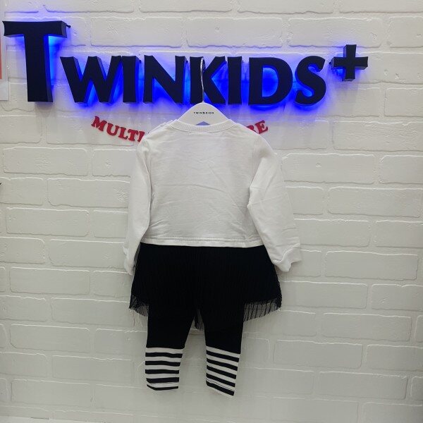 샤 배색이 포인트인 롱티 상하복으로 앞가슴 미니 와펜나염이 포인트로 들어감