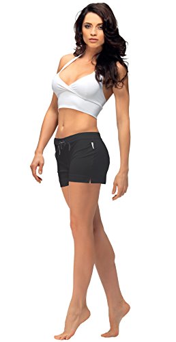 -. Feature : Sporty and versatile, the Adela Nair women's European sports shorts are an ideal choice for any fitness activity, such as cycling, jogging, gym, yoga, and more. / The Adela Nair shorts feature short length, short side slits, and an elastic and drawstring at the waist. / Gwinner sportswear is made of extremely durable high quality Italian fabric that offers exceptional moisture wicking, thermoregulation, and UV protection. / High elasticity of the fabric allows for a perfect fit and freedom of movement. / Composition: 91% Polyamide, 9% Spandex.